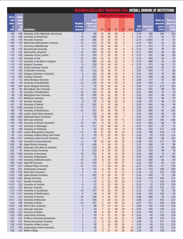 2014年英国科学研究质量框架排名(REF)